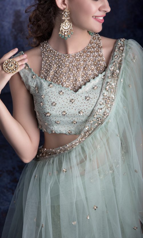 Select options This product has multiple variants. The options may be chosen on the product page Pastel Green Tulle Lehenga Set Rs. 95,000