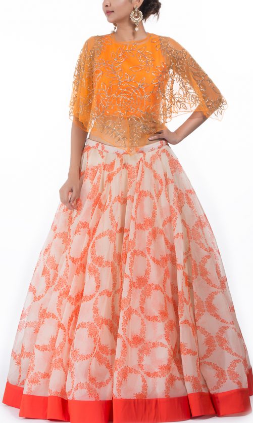 Select options This product has multiple variants. The options may be chosen on the product page Peach Organza Skirt and Cape Rs. 65,000