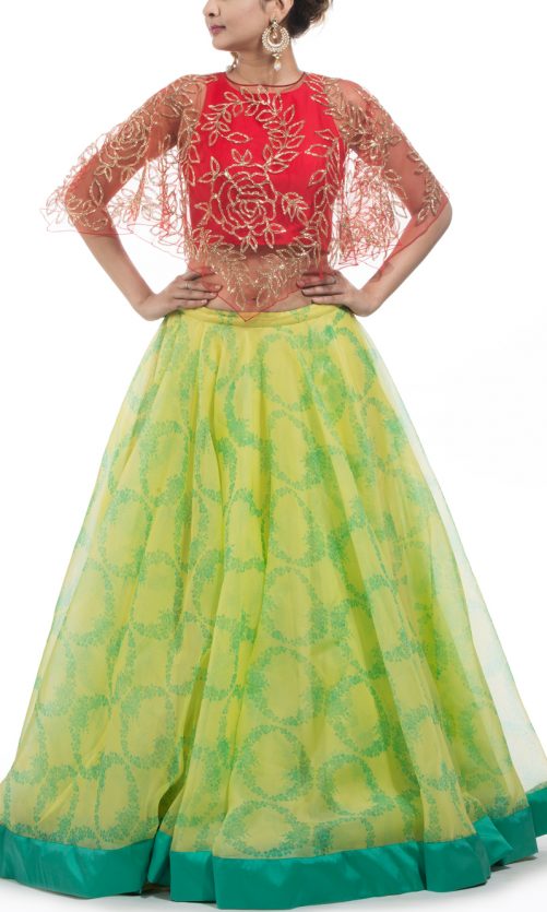 Select options This product has multiple variants. The options may be chosen on the product page Green And Red Lehenga Rs. 65,000