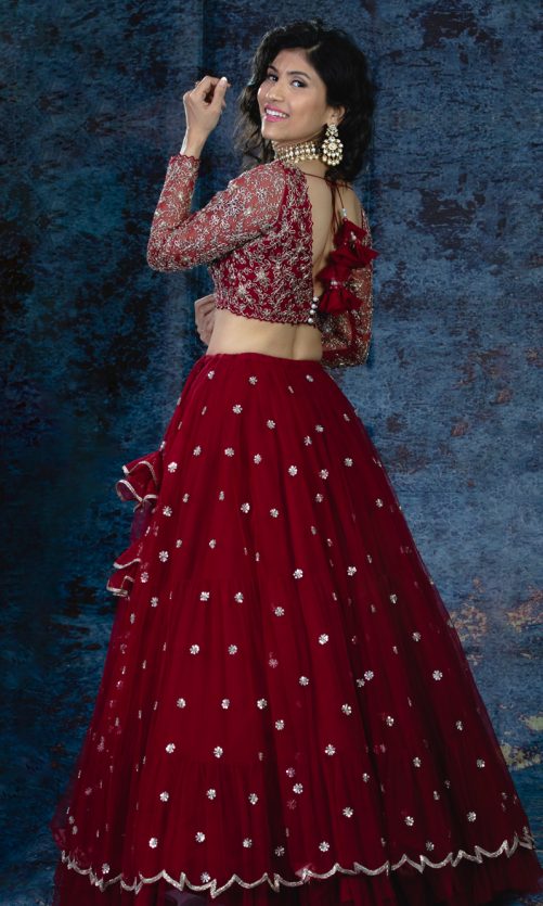 Select options This product has multiple variants. The options may be chosen on the product page Maroon Lehenga Rs. 70,000