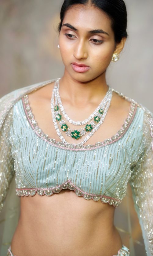 Select options This product has multiple variants. The options may be chosen on the product page Pastel Green Embroidered Lehenga Rs. 130,000