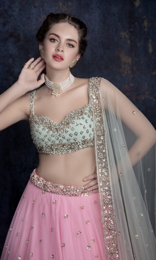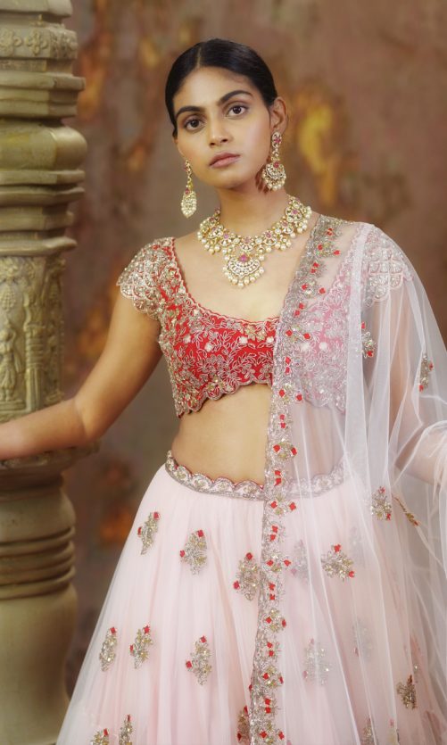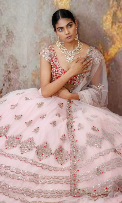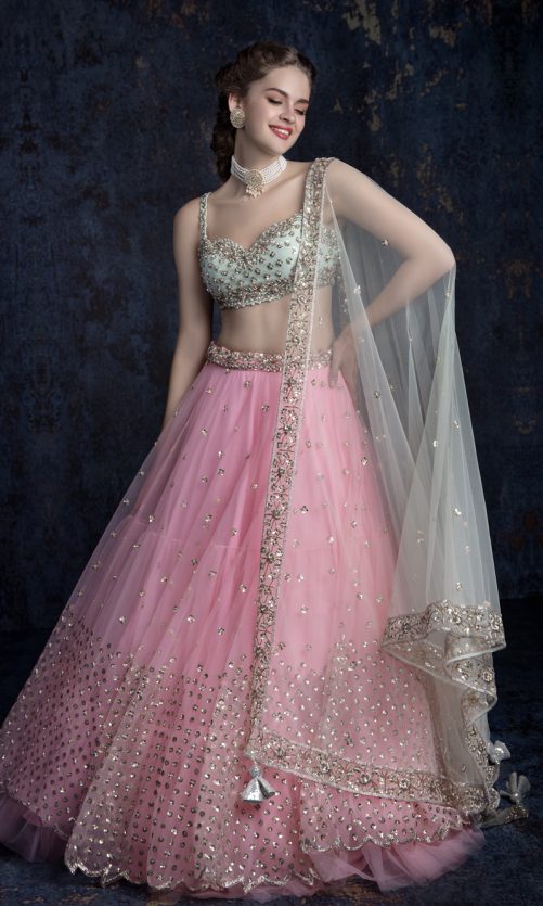 Select options This product has multiple variants. The options may be chosen on the product page Pastel Pink Lehenga Rs. 170,000