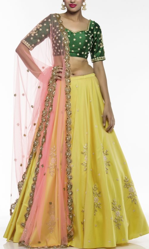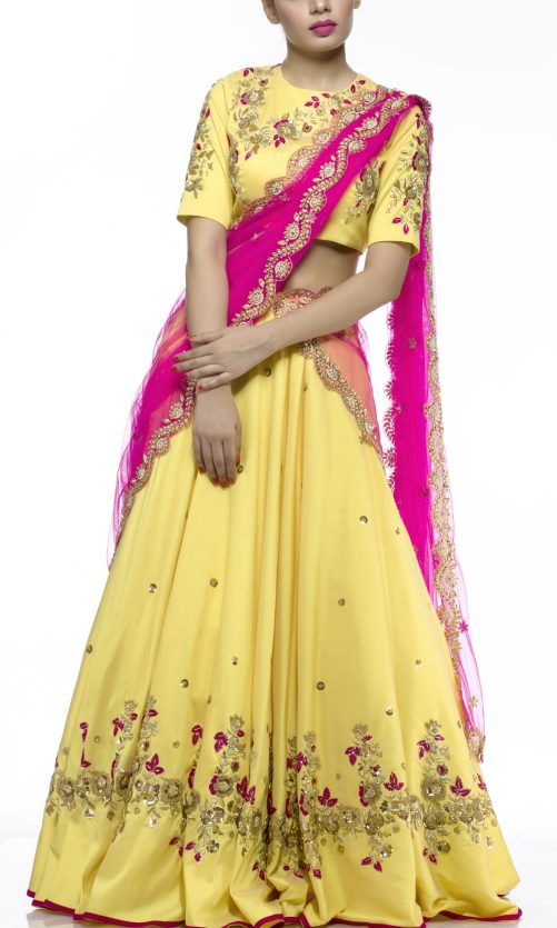 Select options This product has multiple variants. The options may be chosen on the product page Lemon Yellow Embroidered Lehenga Rs. 71,000