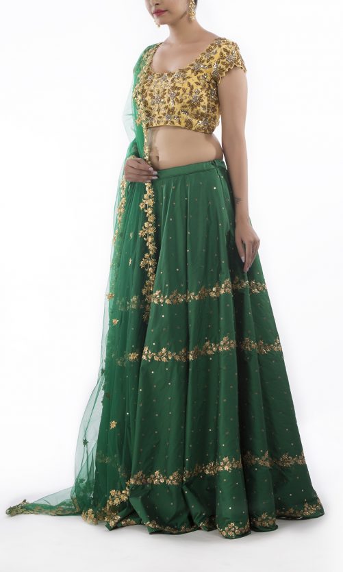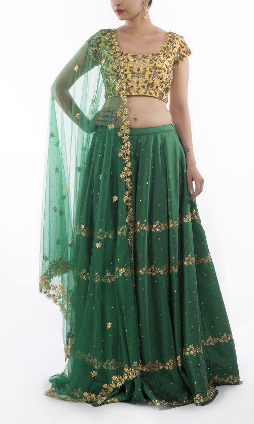 Select options This product has multiple variants. The options may be chosen on the product page Bottle Green Zardozi Lehenga Rs. 95,000