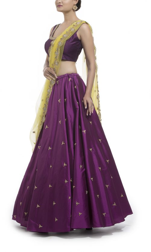 Select options This product has multiple variants. The options may be chosen on the product page Purple & Yellow Lehenga Set Rs. 35,000