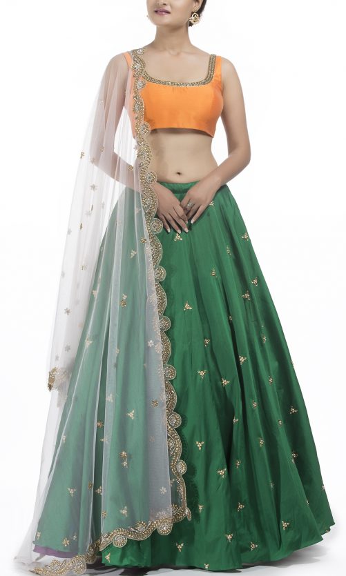 Select options This product has multiple variants. The options may be chosen on the product page Green & Orange Lehenga Set Rs. 35,000