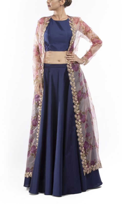 Select options This product has multiple variants. The options may be chosen on the product page Midnight Blue Lehenga Jacket Set Rs. 29,000