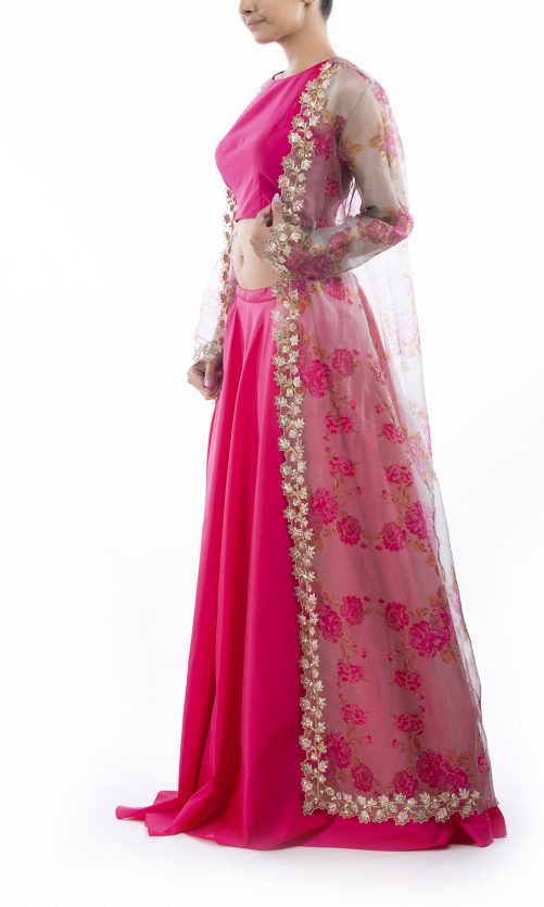 Select options This product has multiple variants. The options may be chosen on the product page Pink Lehenga & Cape Set Rs. 29,000