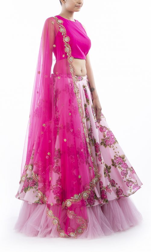 Select options This product has multiple variants. The options may be chosen on the product page Pink Floral Lehenga Set Rs. 34,800