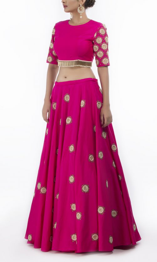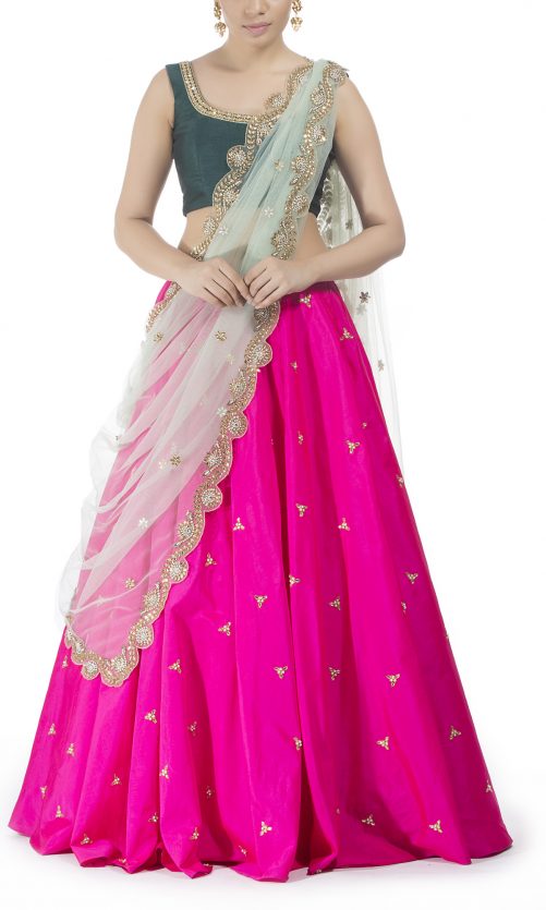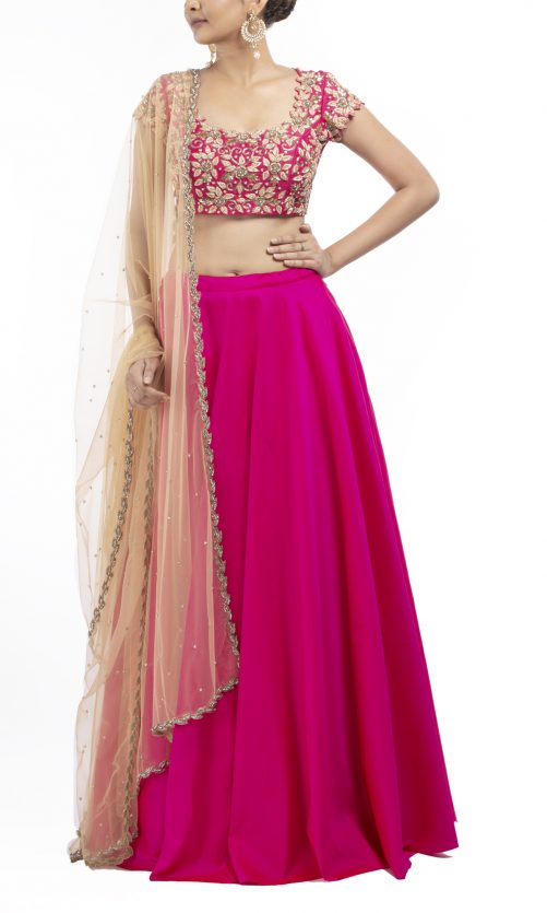 Select options This product has multiple variants. The options may be chosen on the product page Silk Lehenga With Pink Embroidered Blouse Rs. 32,000