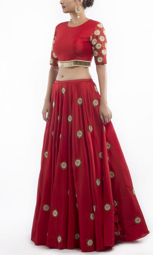 Select options This product has multiple variants. The options may be chosen on the product page Silk Lehenga With Red Embroidered Blouse Rs. 32,000