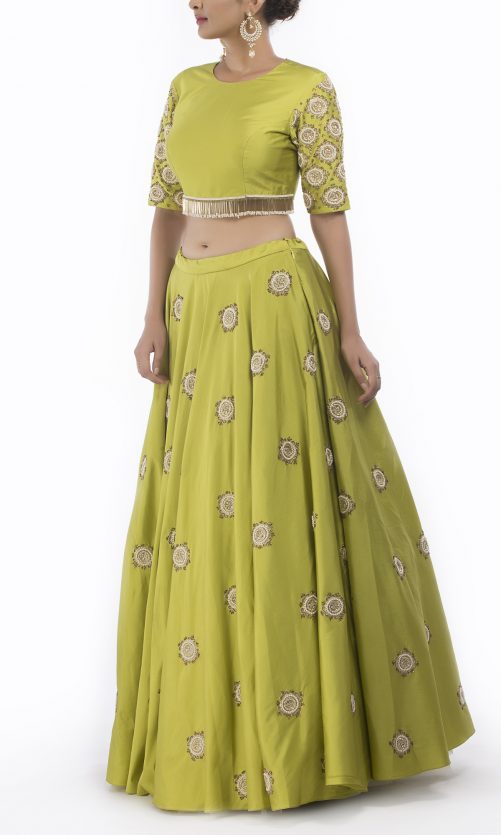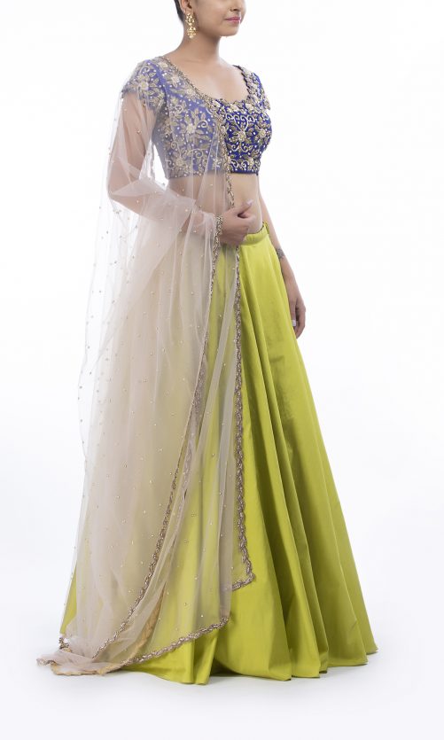 Select options This product has multiple variants. The options may be chosen on the product page Lime Green Silk Lehenga Choli Rs. 32,000