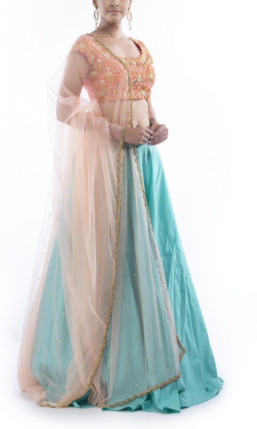 Select options This product has multiple variants. The options may be chosen on the product page Powder Blue Lehenga With Pearl Work Rs. 30,000