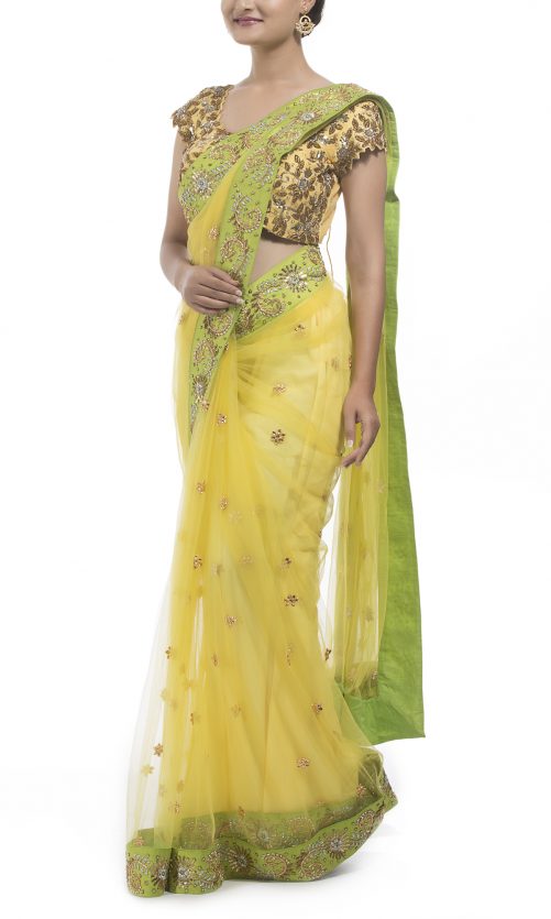 Select options This product has multiple variants. The options may be chosen on the product page Yellow Hand Embroidered Saree Set Rs. 45,000